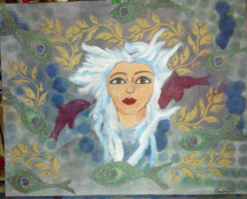 16″x20″ Acrylic,krylon, and applique on canvas. For the Wonderful artist Sara Lynn Hawley. Check out her work at