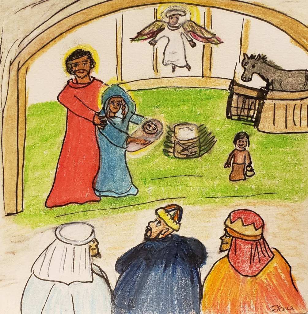 “Feast of the Assumption” watercolor, ink, pencil on yupo paper