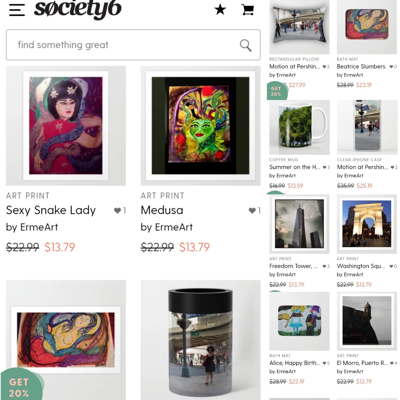 Prints, iPhone cases, home goods and more available at ErmeArt Society6 shop