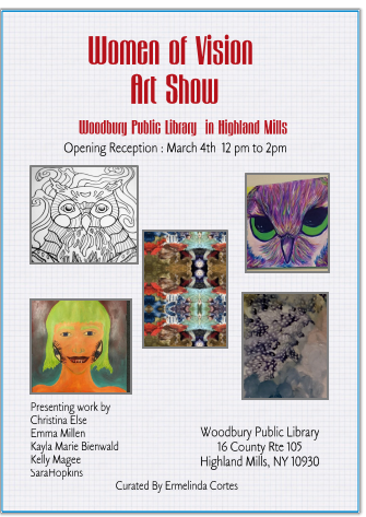 I’m curating the “Women of Vision Art Show” at the Woodbury Public Library. The show will be up for the month of March to celebrate Women’s month!